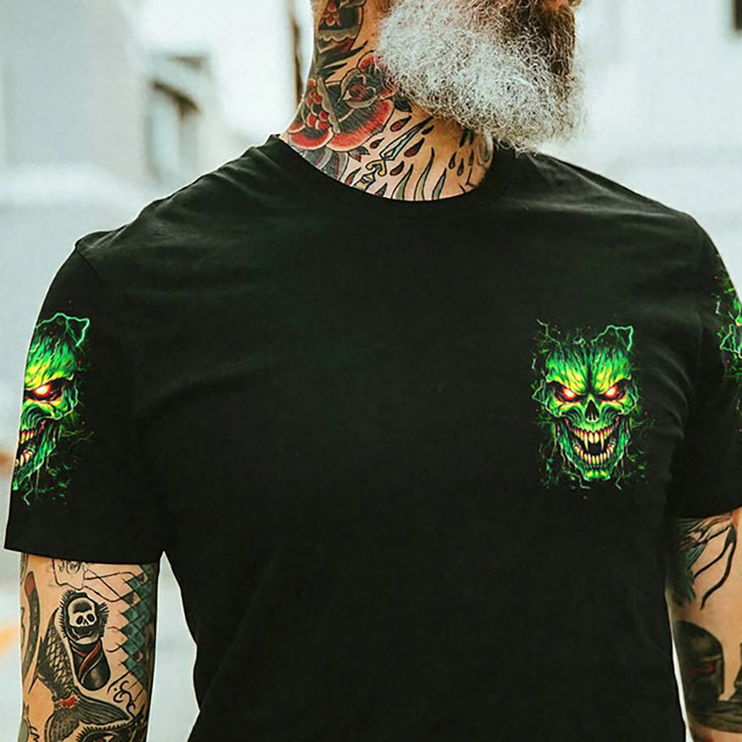 I'm Never Alone Skull Demon Print Casual Men's T-Shirt